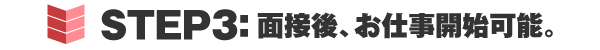 お申し込み頂きました内容を確認後、改めて担当者よりお仕事説明、面接日程についてご連絡差し上げます。